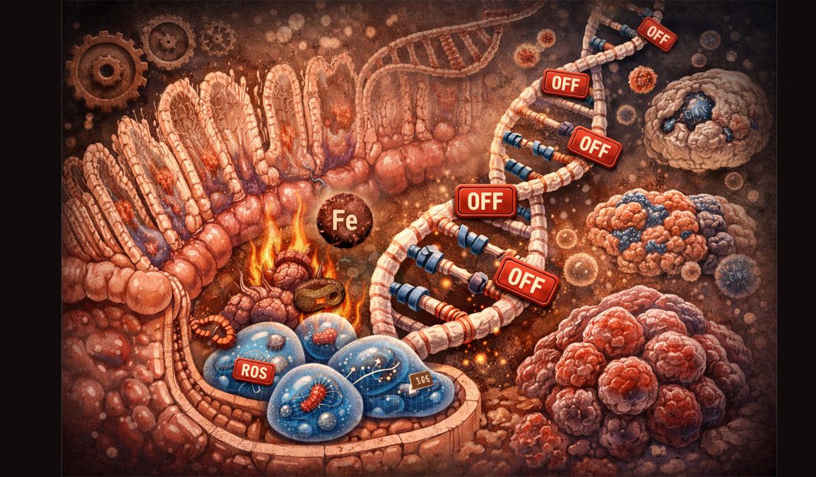 In aged intestinal cells, the researchers found that iron handling is distorted. Older cells absorb less iron from the environment but release more iron out of the cell. That leaves less bioavailable iron inside the nucleus, especially the ferrous iron (Fe²⁺) that acts as a cofactor for TET enzymes.